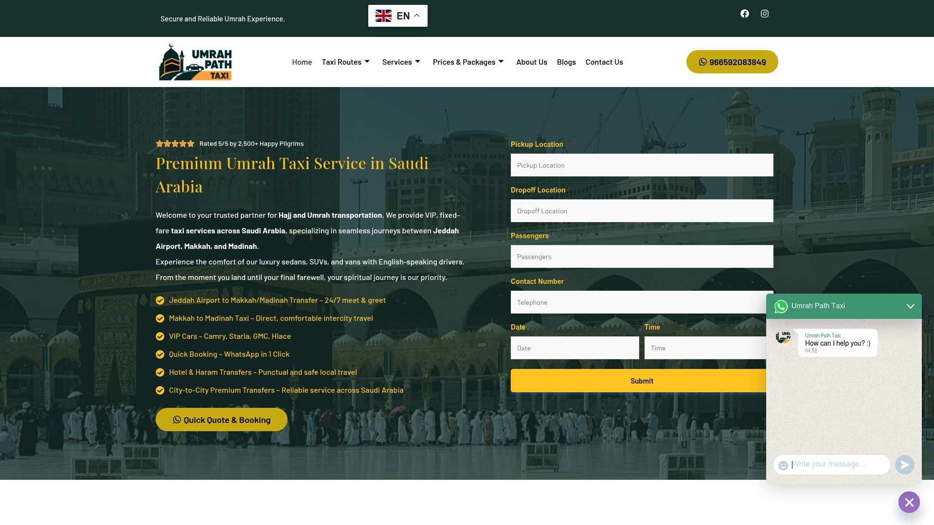 Umrah Path Taxi combines a VIP fleet experience with messaging based booking and a clear focus on Hajj and Umrah routes. That mix delivers peace of mind for first time visitors who want reliable pickup details and an English speaking driver without complex booking steps.