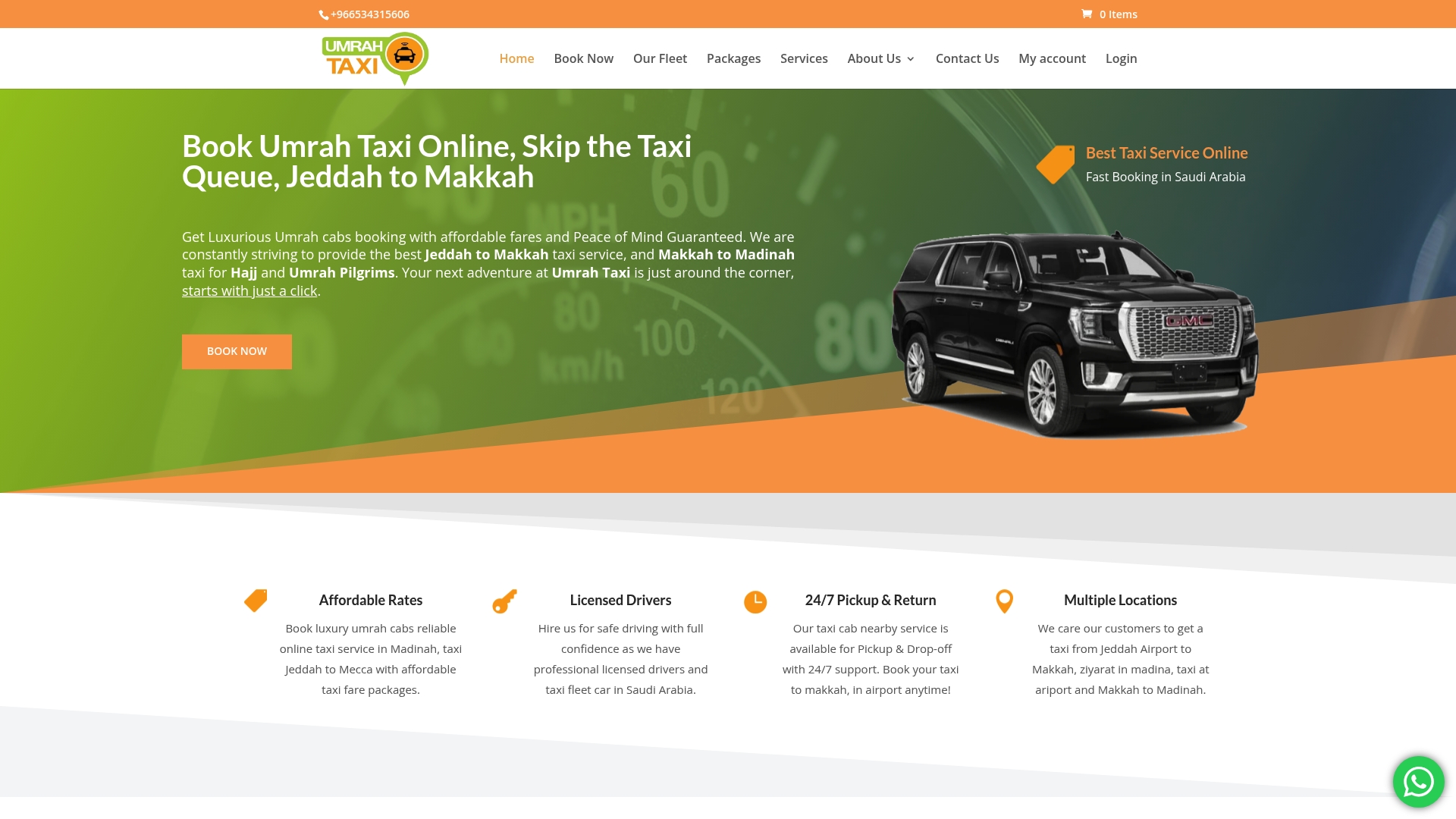 Umrah Taxi provides focused taxi booking for pilgrims traveling between Jeddah, Makkah, and Madinah with a clear emphasis on safety and convenience. The service combines online booking, licensed drivers, and both luxury and budget vehicle choices for a predictable travel experience.