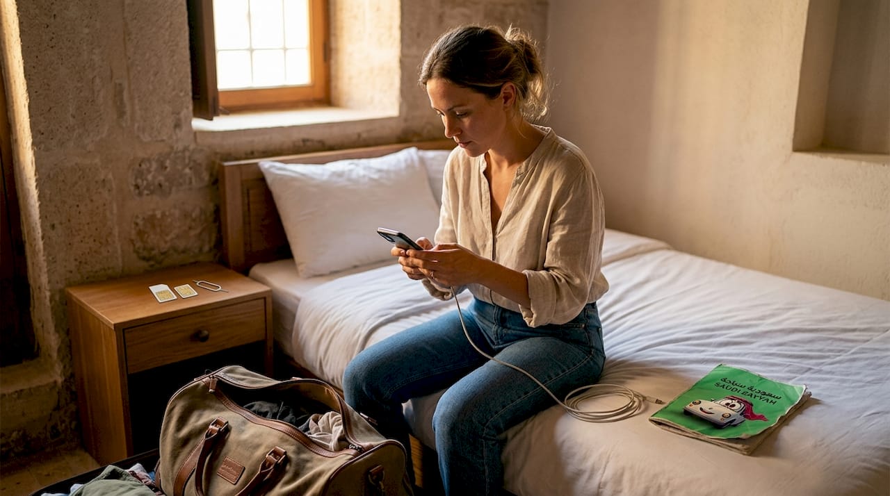 Connectivity options fall into two categories: eSIM and physical SIM. eSIM providers like Airalo, AloOui, and Ubigi offer plans from 1GB to 100GB and can be activated via QR code before you leave home, eliminating airport queues and roaming fees. Local operators STC, Mobily, and Zain offer physical SIMs with Saudi numbers, which are useful for WhatsApp calls and local messaging.