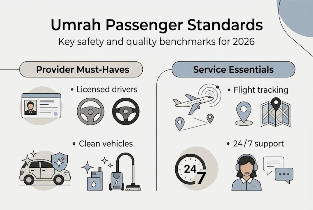- Safety, regulation, and quality benchmarks for Umrah transport